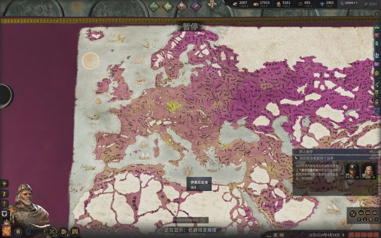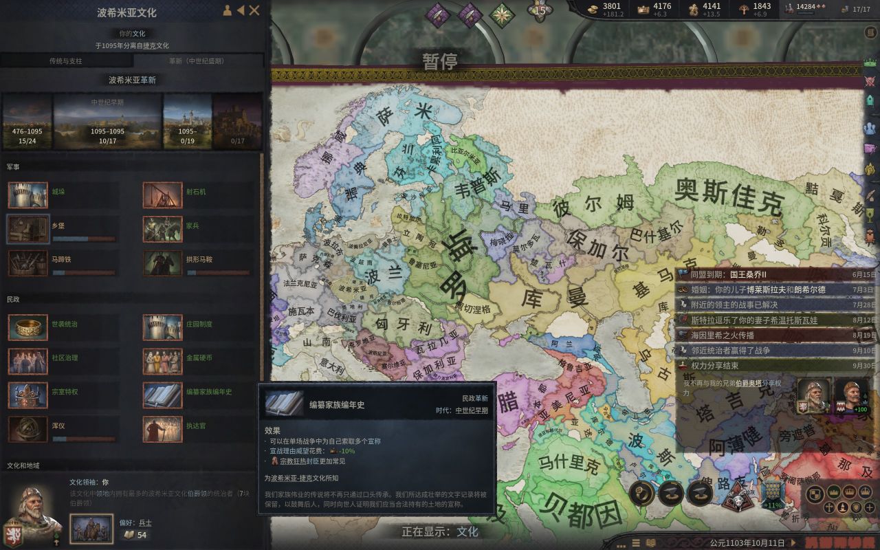 而因爲西斯拉夫的決議會給2個隨機革新,而正好給到最好的革新,繼續開始種田。