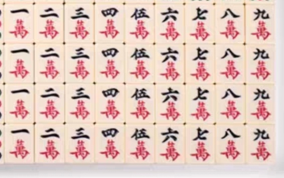 这是麻将最基础的4种牌,1-9万,1-9条,1-9饼再加上7个杂子,每一张牌会有4只一模一样的。