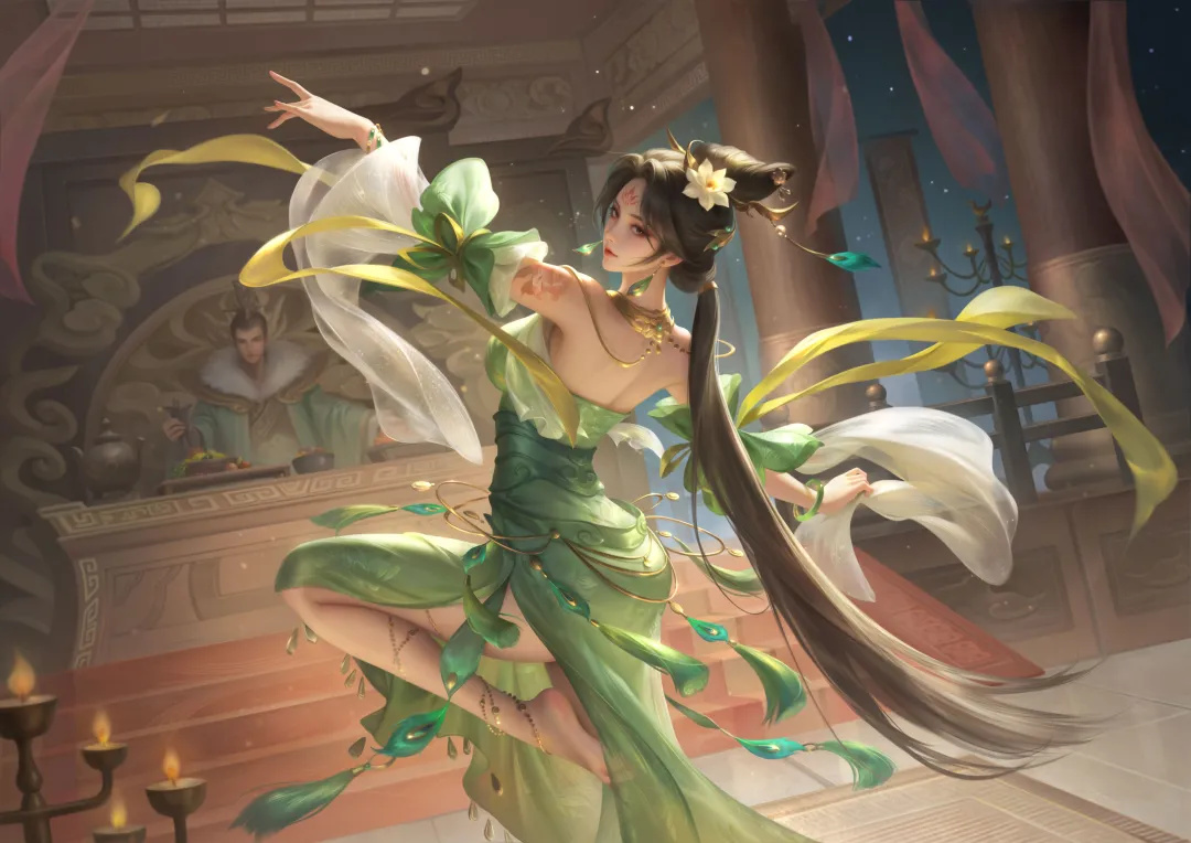 徐馨一袭绛纱舞衣,广袖垂落,金线绣的鸾鸟在烛火下熠熠生辉,座上的孙权眸光微动,眉宇间的阴郁随着舞姿消散了许多。