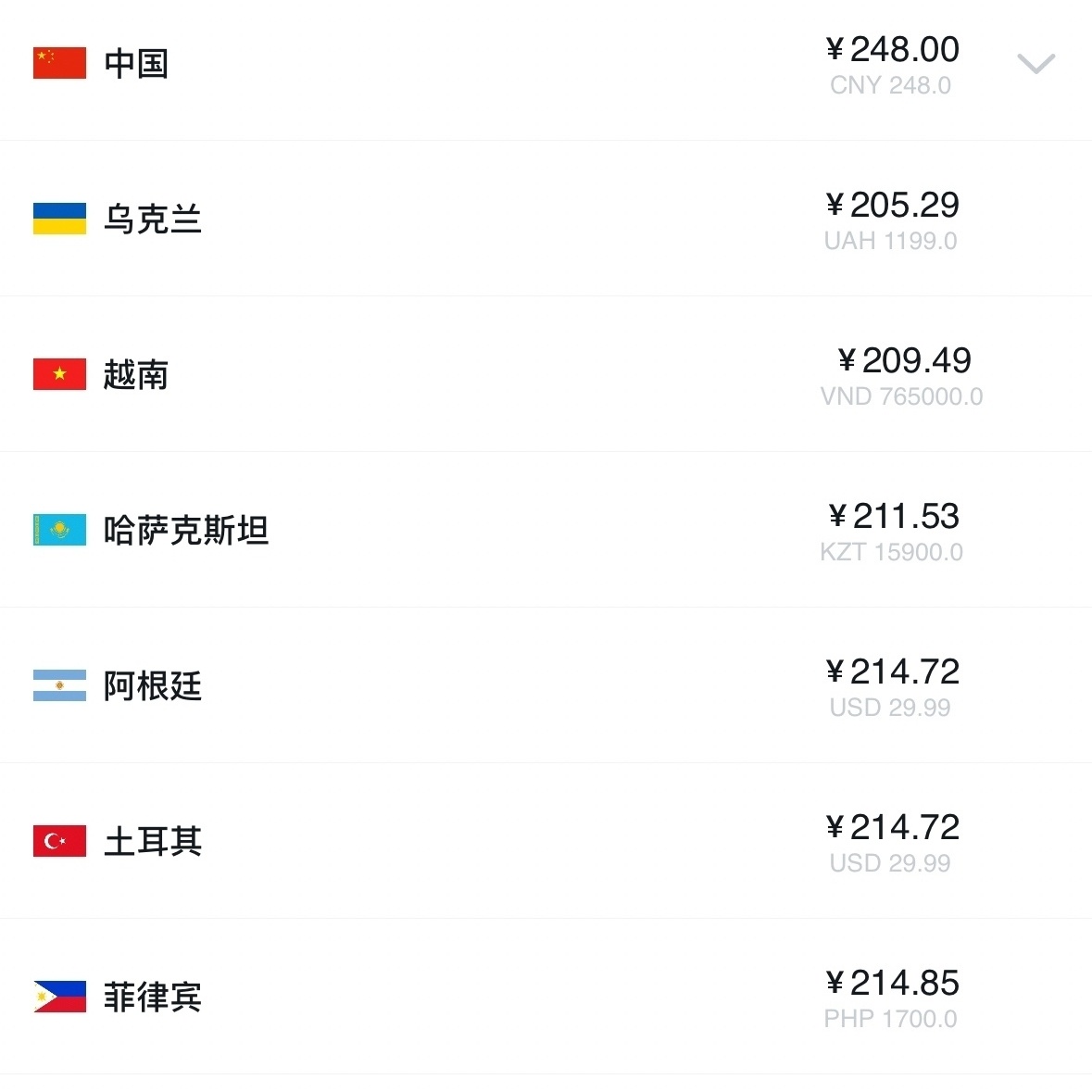 有玩家反应游戏刚能玩没多久,在多个外区的价格就纷纷永降,国区反而惨遭背刺成为高价区,也是巨爆炸的一大节奏。