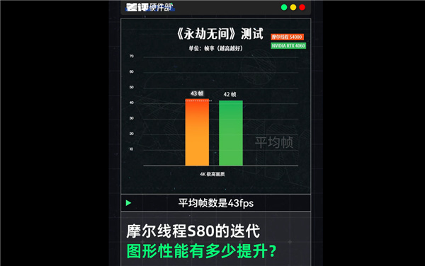 那S90的遊戲性能到底怎麼樣呢?知名博主“差評”對摩爾線程S4000的圖形性能進行了跑分,考慮它與S90同宗同源,基本可以拿來參照。