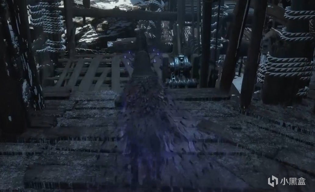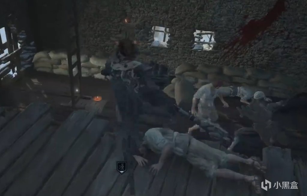 传送点向后走,出门右转,一直走上梯子,一直走,看到有人在打架,下去从左边的梯子再上去。右转直走,在上梯子。来到顶楼的小箱子里。