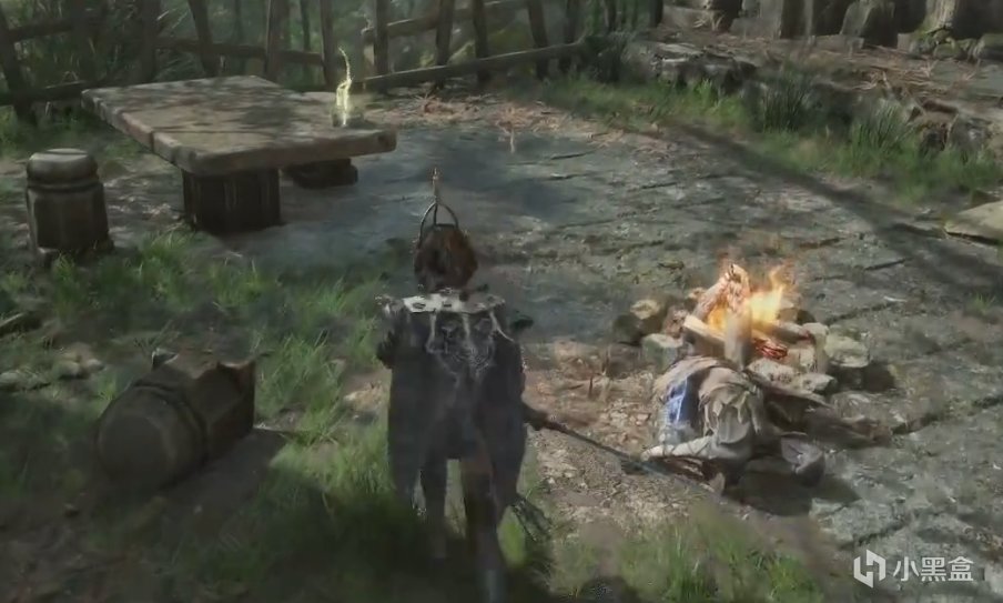 右转,有一堆僧人围在一起喝酒,武器就在桌子上。