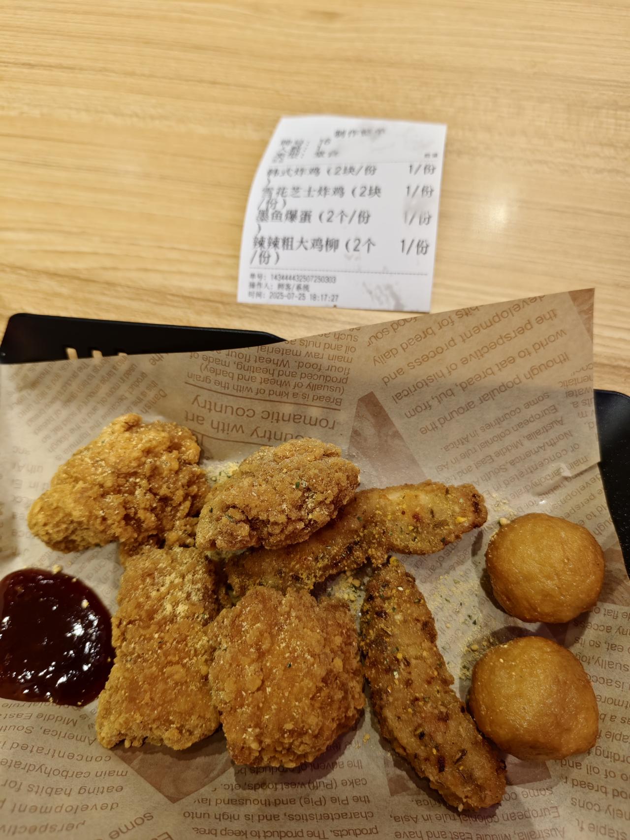 👍 赞: 酱料多(最爱超辣酱-像火鸡面,雪花芝士撒料);墨鱼丸QQ弹弹好吃;韩式炸鸡正常。