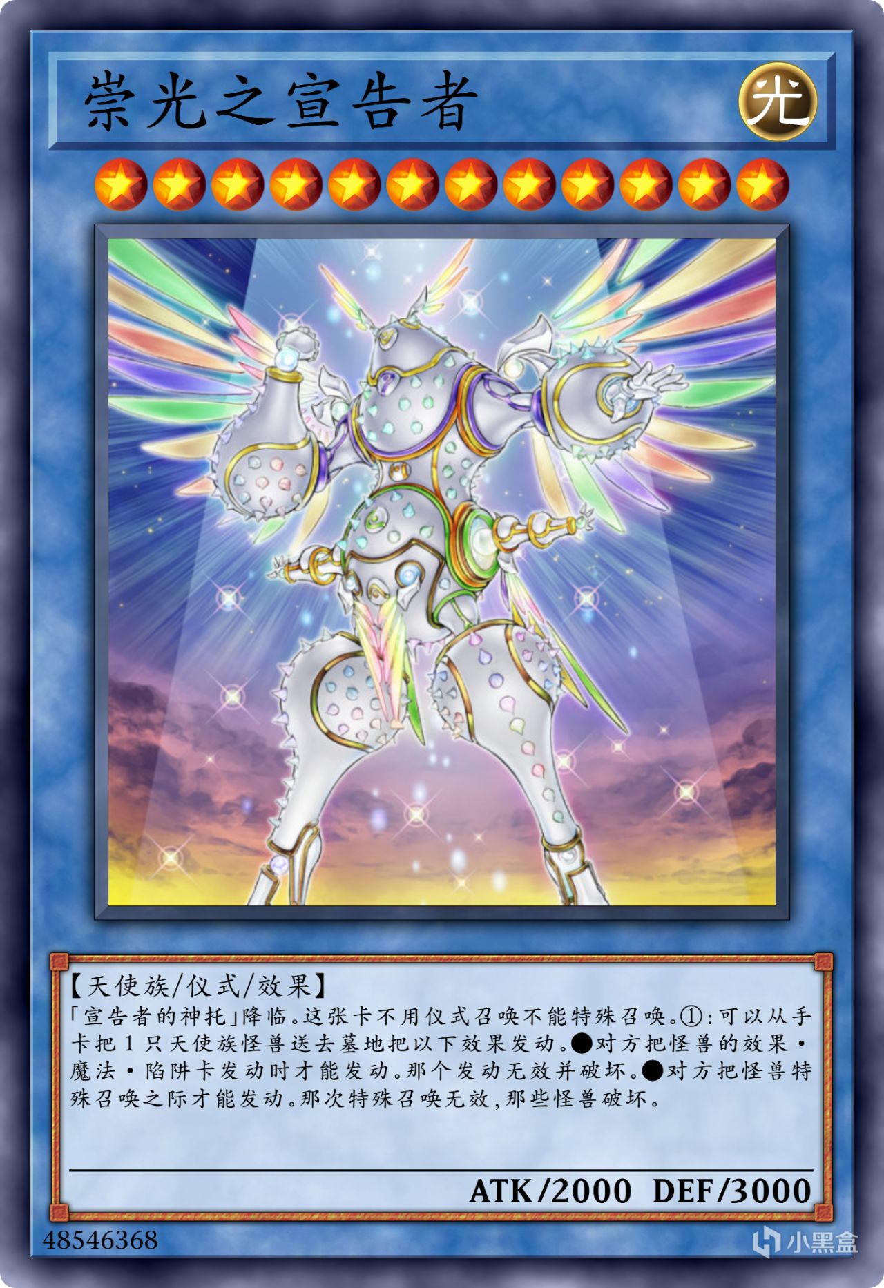 【崇光之宣告者】仔细想想,现在游戏王新出的卡牌里面,是不是无效系的卡牌越来越少,反而是除外和破坏系的卡牌越来越多。即便是出无效系的新卡,也都是单一的针对怪兽效果,或者是魔法陷阱的无效,很少再有能够无效怪兽·魔法·陷阱的三色康。促成现在这一局面的原因,不得不说得有这位“康师傅”的一份功劳。
