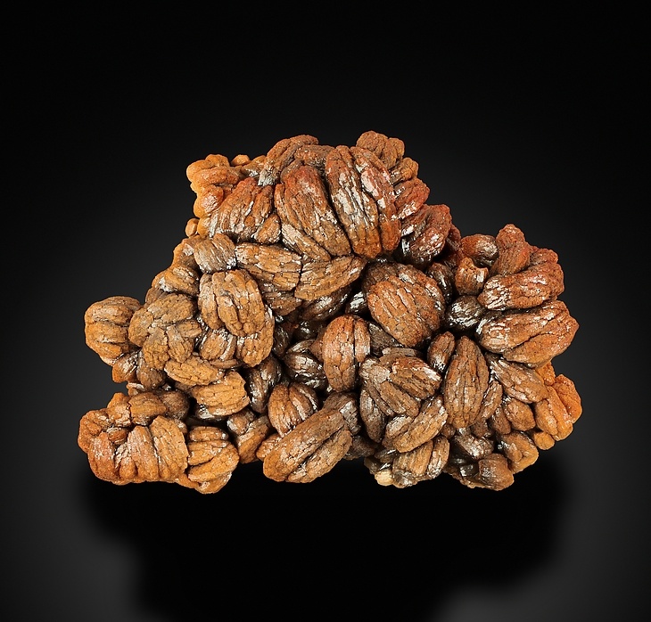 此刻钒铅矿中的钒元素被砷大量替换,钒铅矿也从原本鲜艳的红色变成了像咖啡豆一样的棕色。导致颜色变化的根本原因是钒铅矿中原本的钒酸根离子被取代成为了砷酸根:(As)→(V),而砷酸根(AsO₄³⁻)的电荷转移跃迁能量与钒不同,导致了吸收光谱的变化。就比如完全以砷为主的矿物(如砷铅矿)也通常呈现黄绿色或褐色。