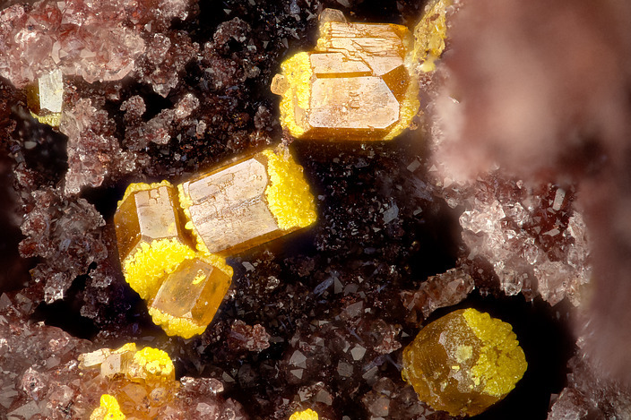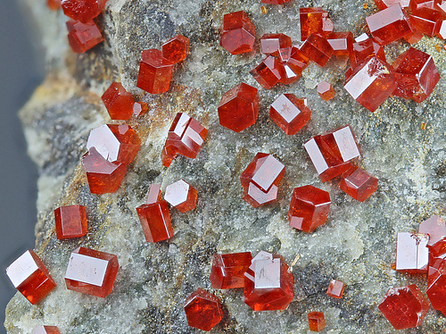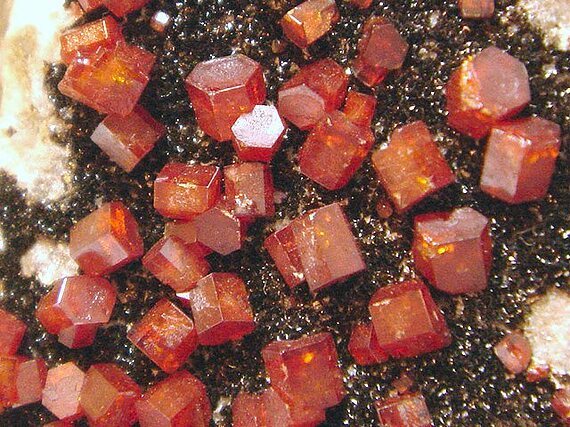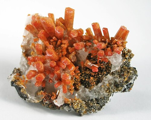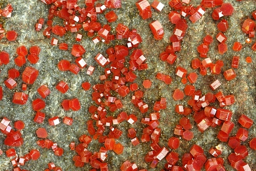 无色的钒铅与血红的钒铅锌矿?很有意思的组合。