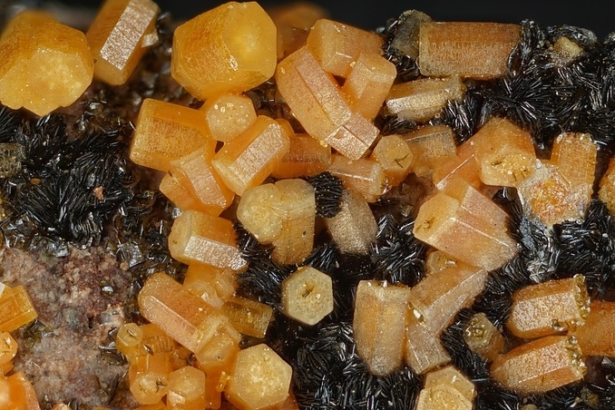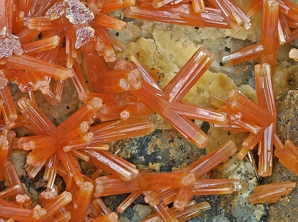 六方柱状结晶,产地:Apache Mine, Radium, Burch area, Globe Hills Mining District, Gila County, Arizona, USA 图源:2006 by Dominik Schläfli. All rights reserved