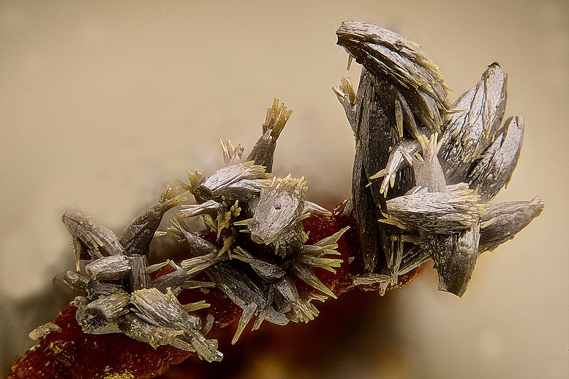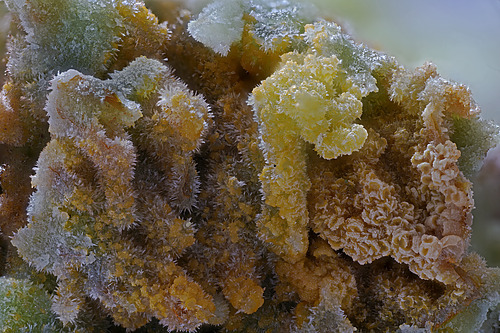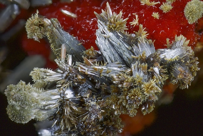 钒铅矿与磷钙铅矿共生,美丽得像海底的珊瑚。