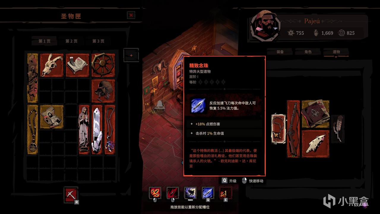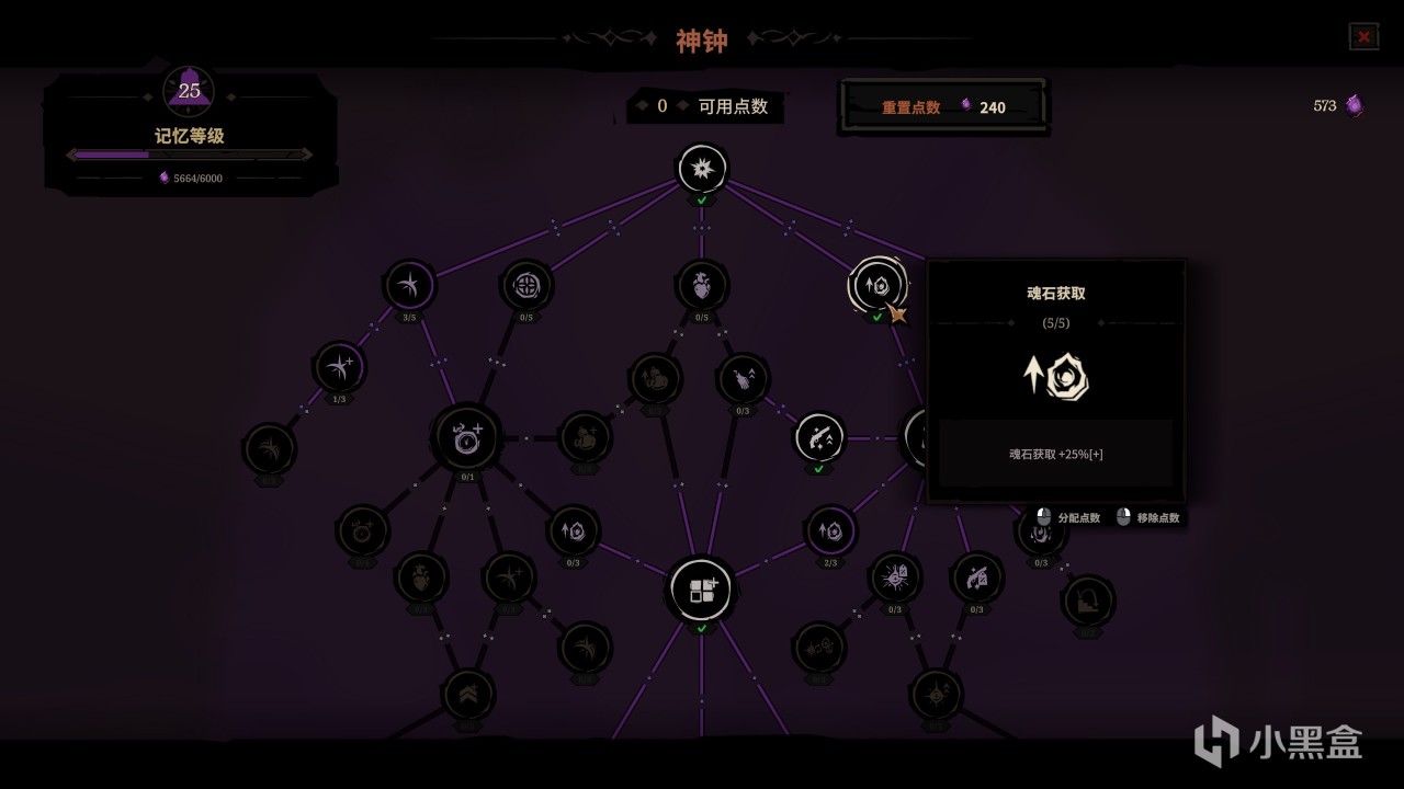 在基地中我们可以与商人交易获得新的装备or遗物,装备一旦获取就会自动着装,而遗物需要我们移动到柜子处进行穿戴,在柜子处往里走可以看到一个负责天赋加点的魔池,他会记载我们获得的最大魔石数量,并给予点数用于加点,我个人更为推荐优先加点魔石的获取量,至于为何,大家懂的。