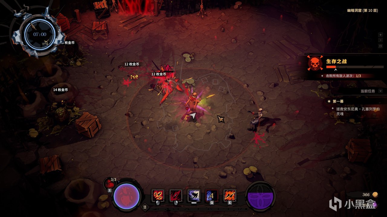 不单单凶猛的敌人,还有来自时间的压迫,在右上角会有一个时间限制,如果没有在对应的事件内结束本层地狱的探索,那就game over了。这个设定需要很多的勇气去挑战,他并不适合多数玩家,好在他有模式可选,也可自由选择是否限时。不要因为是休闲模式就小看了这款游戏。