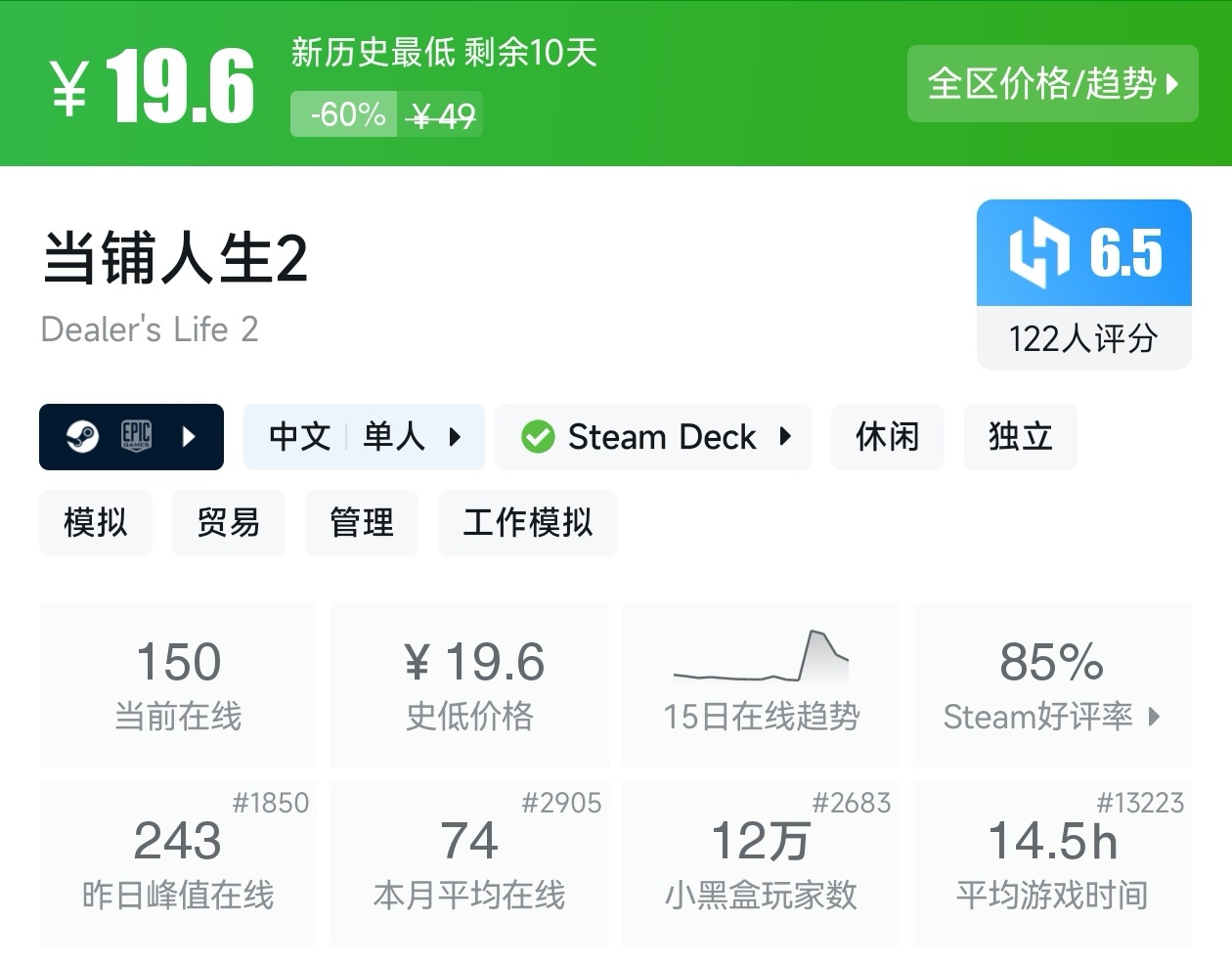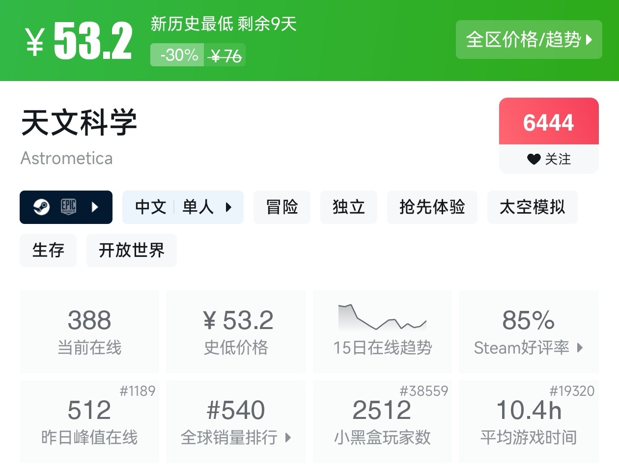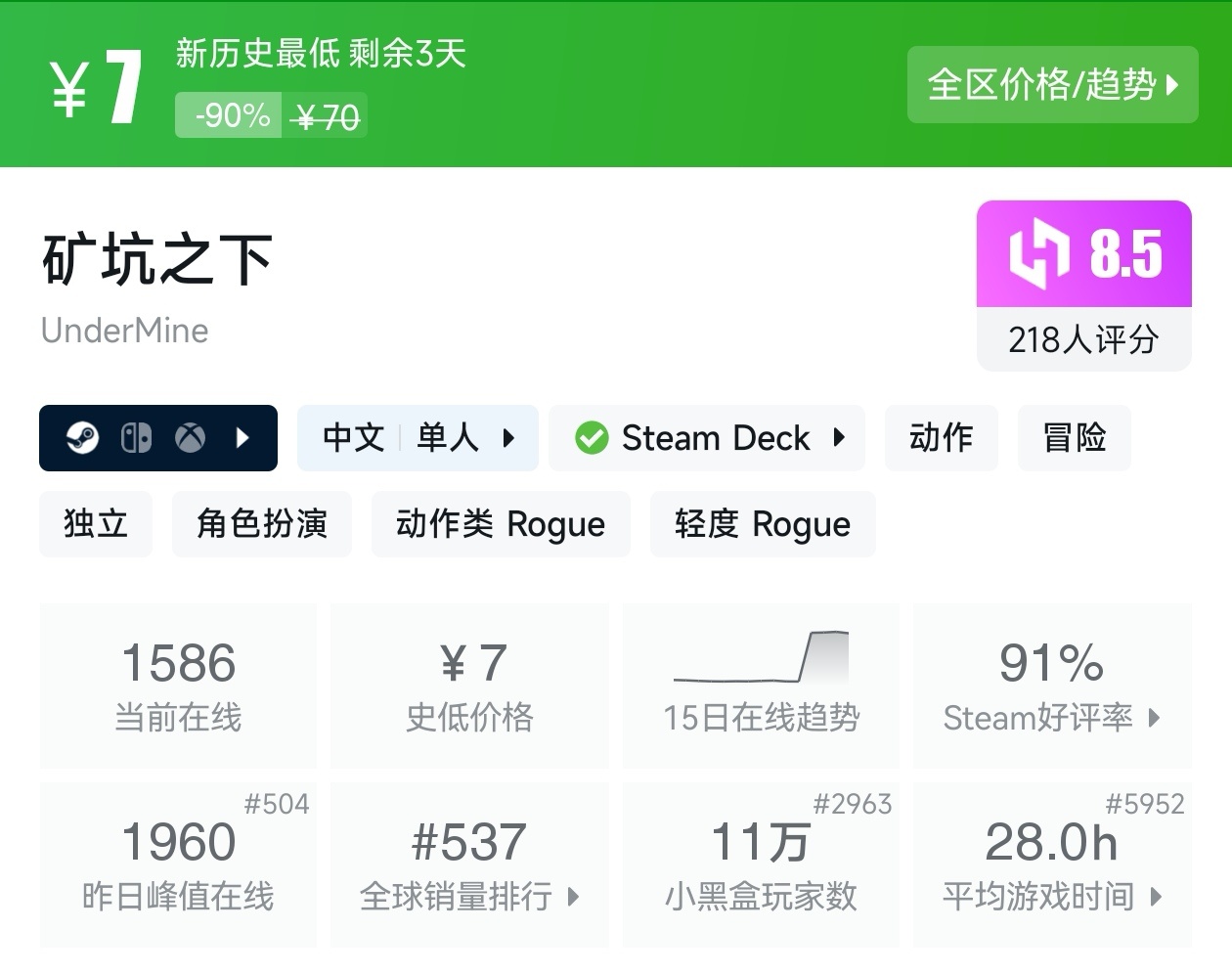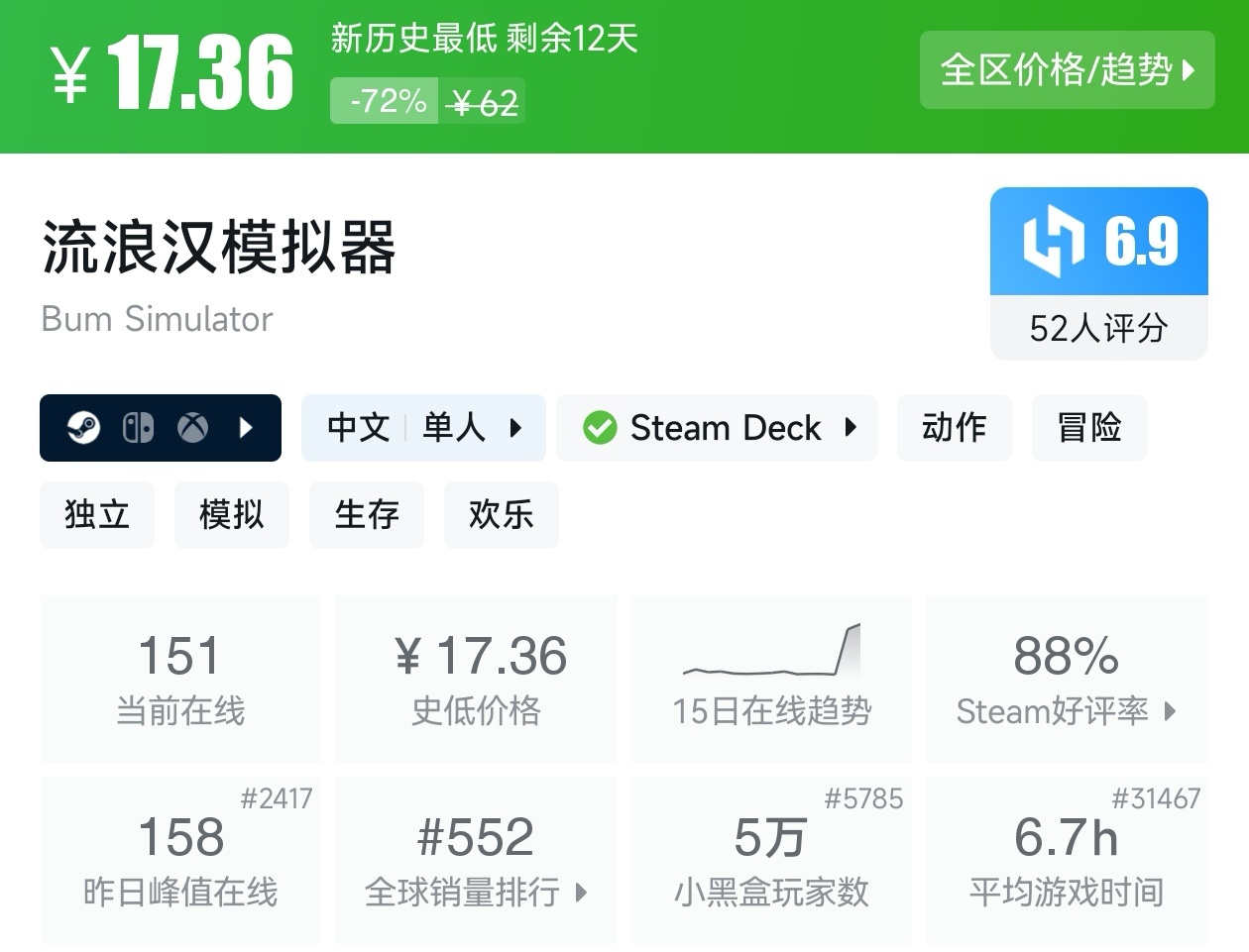 大家好,没错,又是我,你们的老朋友亦然,在最近Steam又迎来了一批打折的游戏,同样有新史低游戏在里面,当然,有些新史低游戏还属于那种高评价游戏,其实新史低买起来最有安全感,因为在很长一段时间内都不会更低,我将为各位进行一个汇总,希望我的汇总,能够帮助各位盒友挑选心仪的游戏。