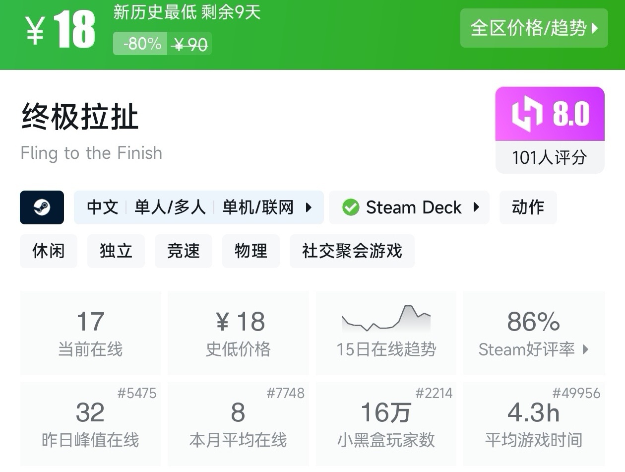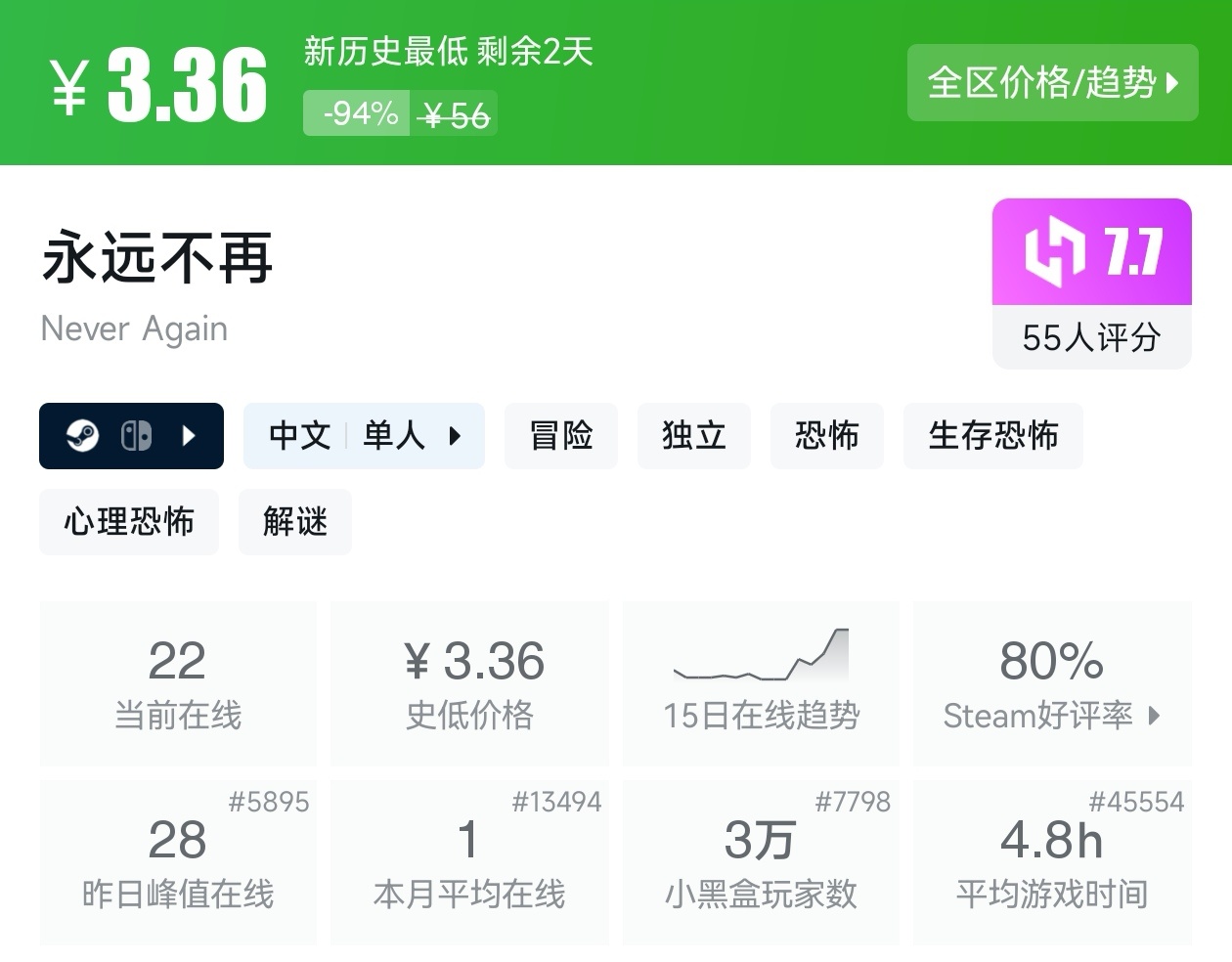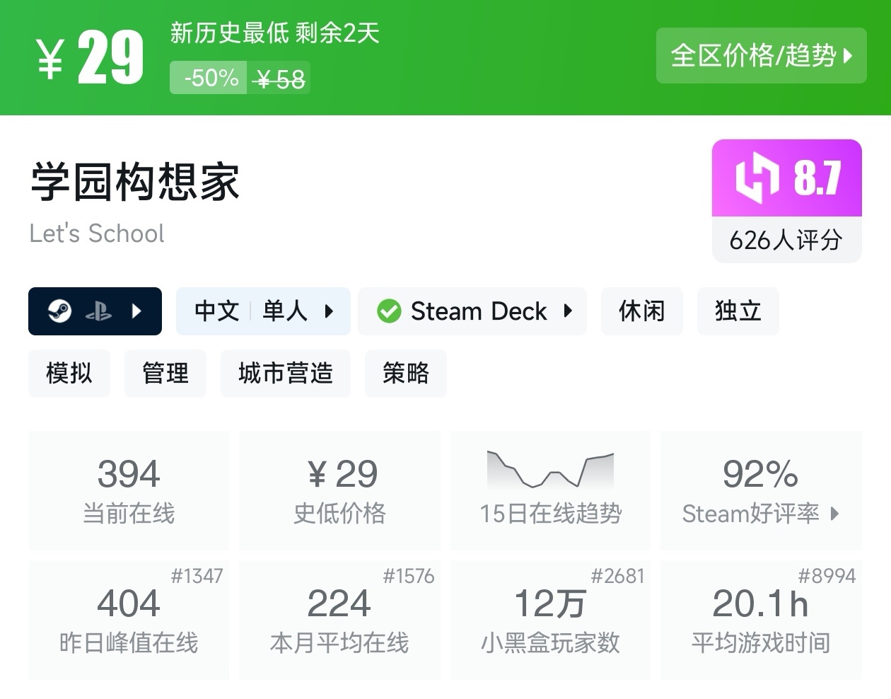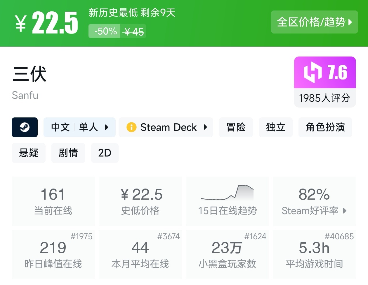 大家好,没错,又是我,你们的老朋友亦然,在最近Steam又迎来了一批打折的游戏,同样有新史低游戏在里面,当然,有些新史低游戏还属于那种高评价游戏,其实新史低买起来最有安全感,因为在很长一段时间内都不会更低,我将为各位进行一个汇总,希望我的汇总,能够帮助各位盒友挑选心仪的游戏。