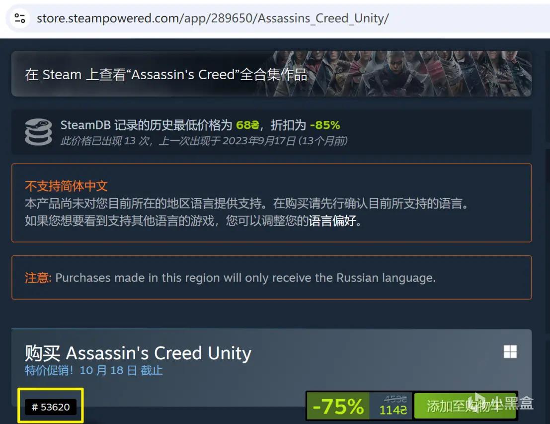 如果你想驗證,可以開兩個瀏覽器,裝上 steamdb 的瀏覽器插件。打開商店搜索 刺客信條大革命。