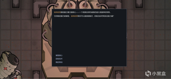 另一個回收技術的選項其實就有點雞肋了,機械主腦並不會爆炸,而是會彈出一個機械主腦的揹包,無限耐久,可以加機械帶寬之類的,並且還有若干無代價的技能
