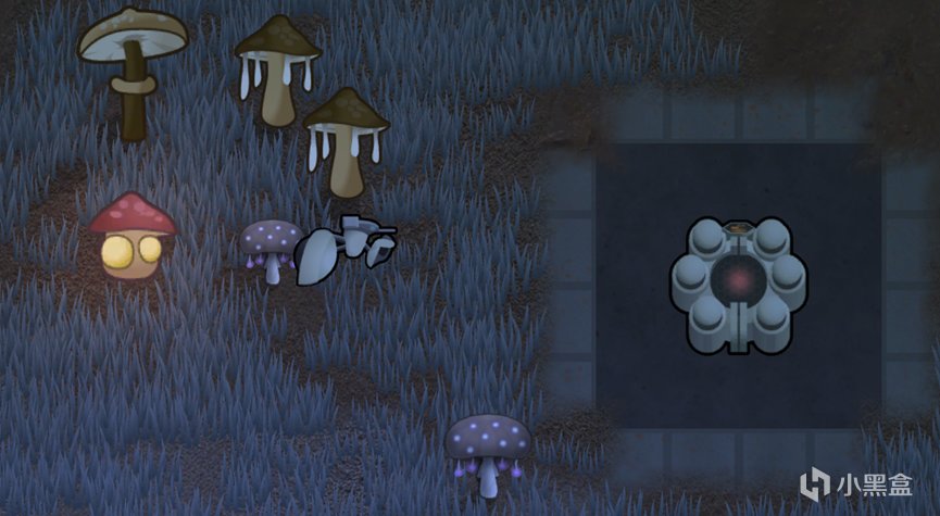 該地區的特殊植物爆炸菇,可以收穫化合燃料,但由於生產時間過長,一般也就是收一次,明顯是告訴玩家落地收一次接着走的