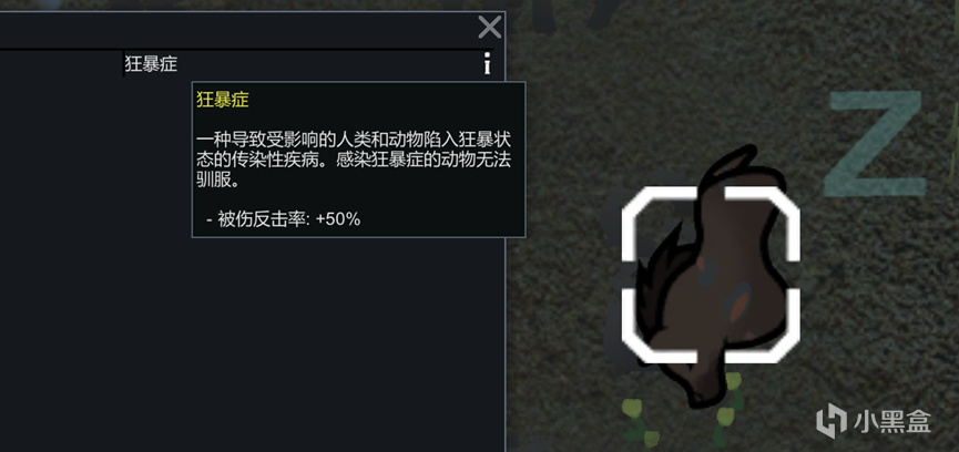 狂暴症會導致動物反擊幾率加50%,此外會因攻擊而傳染,患有狂暴症的動物身體顏色會比其他同類物種深一點