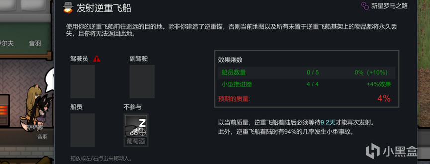 在準備好後,就可以在飛船控制檯處啓動飛船前往地面了,這裏有個有意思的地方就是,飛船的發射是套用的儀式模板,所以當小人在參加其他儀式時,就會導致無人能夠發射飛船