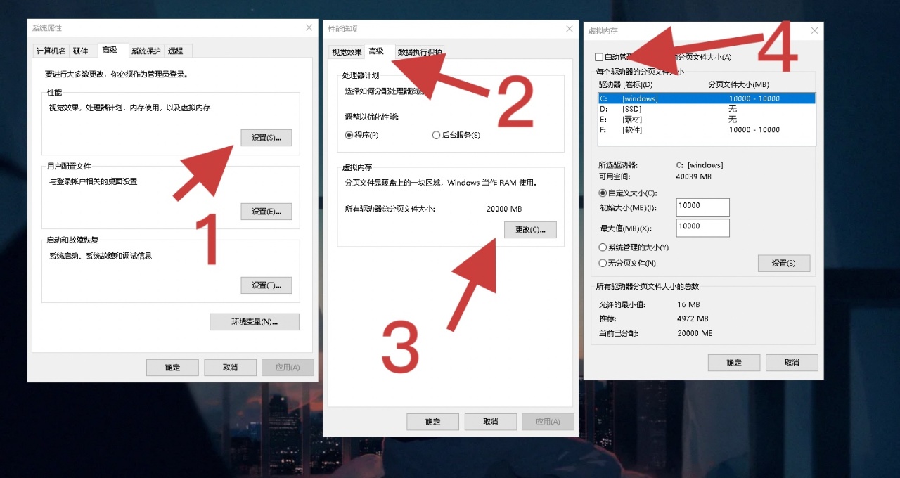 选择C盘盘符和你游戏安装在的盘符,修改到合适的大小