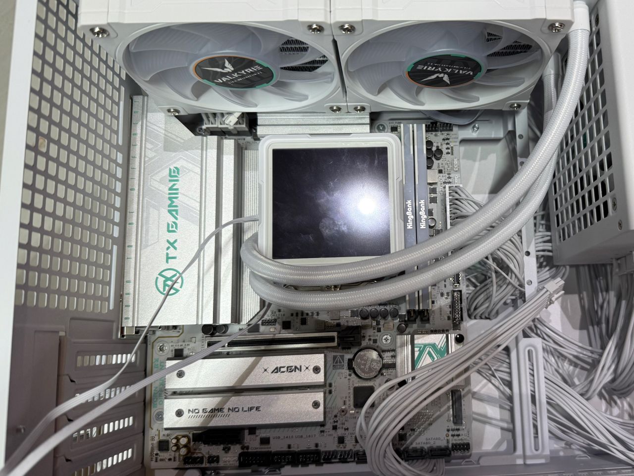 理好线之后成功一次点亮,这里屏显方向不对不要紧,进入水冷屏控制软件中调一下方向就可以了