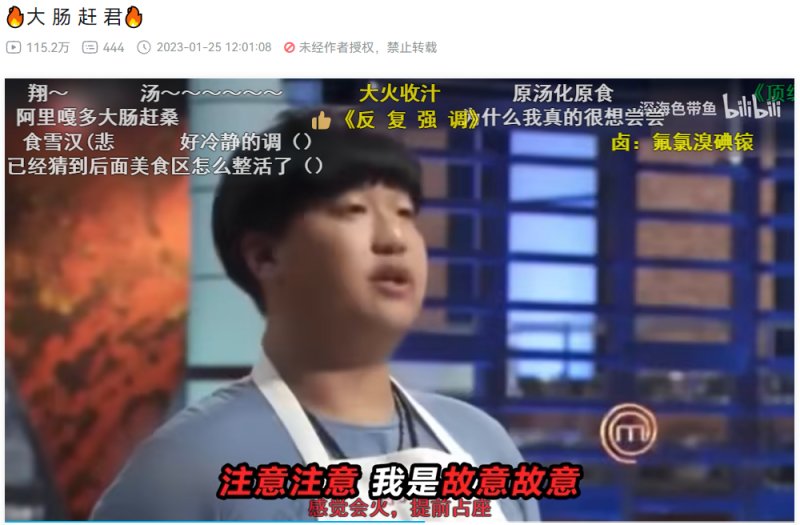 最近網絡上熱傳的梗出自2012年東方衛視一檔名爲《頂級廚師》的美食綜藝節目,在今年春節期間,節目中“九轉大腸”比賽視頻的片段突然被網友“賽博考古”,隨後直接爆火。
