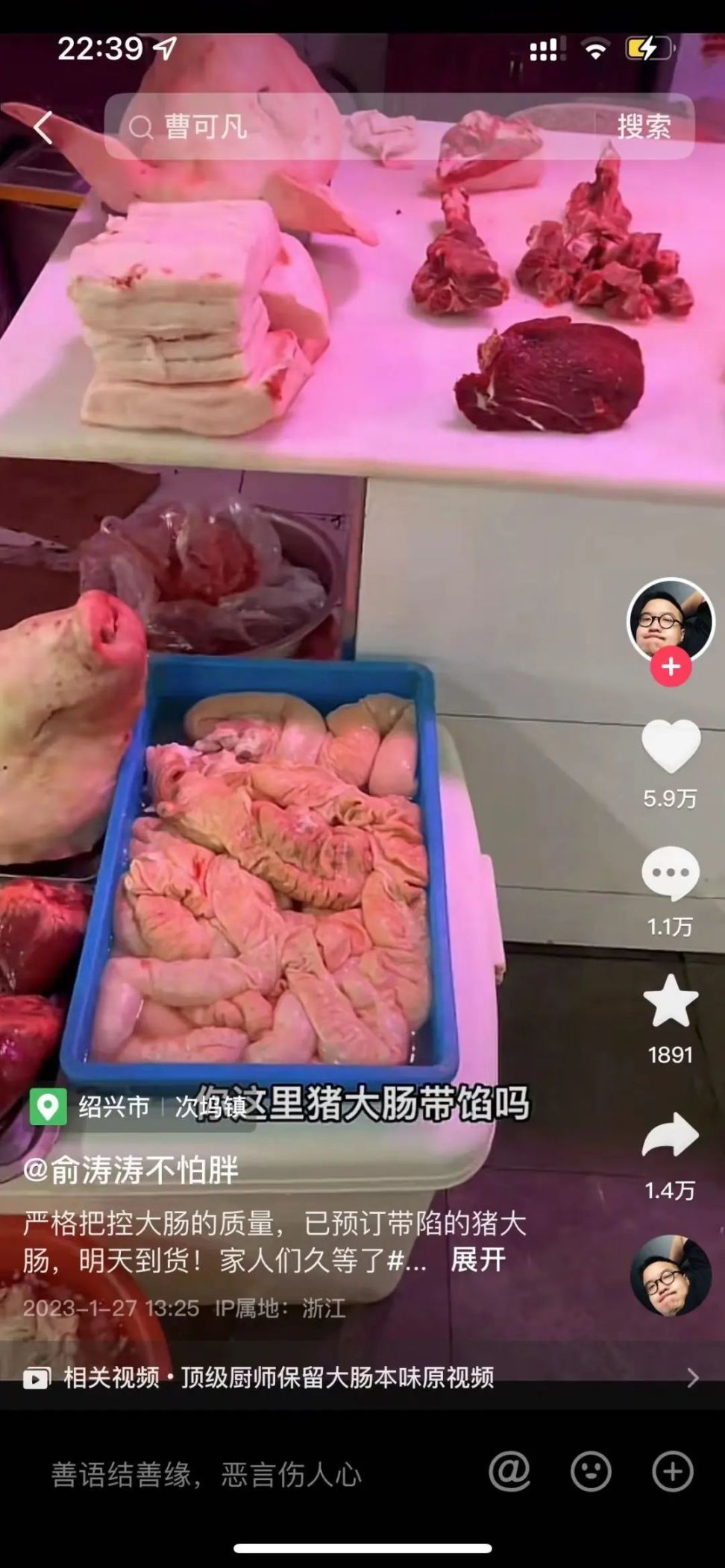 視頻的主人公小胖,現在已經在某烹飪學校擔任老師,爲此還重做了一回“九轉大腸”,買材料的時候特意點名要“帶餡”的……
