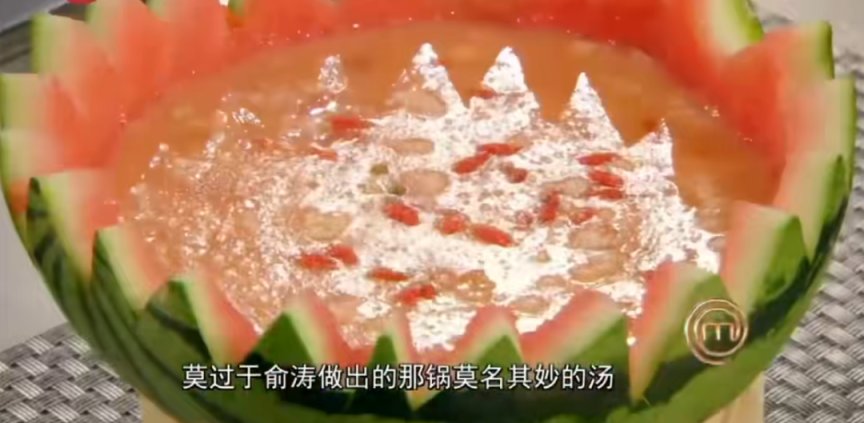 這次讓初生牛犢不怕虎的小胖直呼“值了”的原因,大概率是因爲他之前做的“瘦肉枸杞西瓜羹”被評委打差評,稱爲莫名其妙的湯吧……