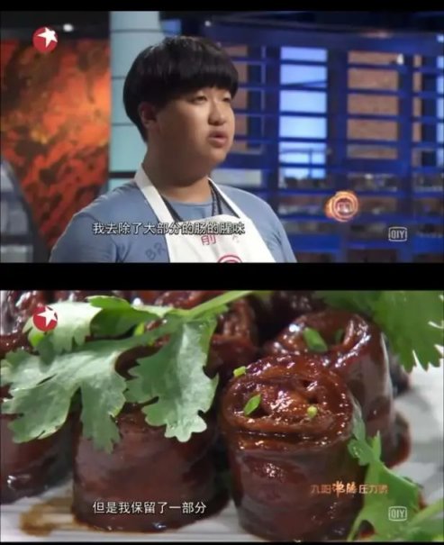 此前,評委曾點評其它選手處理大腸的時候有點過頭,導致大腸原來的味道喪失的比較多。