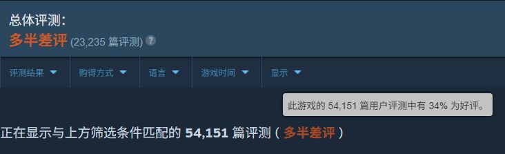 目前《明末:渊虚之羽》Steam上54,151篇评测收获34%好评率,为多半差评,较刚发售时的16%好评率已大幅提升。开发商在1.4补丁说明中再次感谢玩家们给予支持,已全力开发下一个补丁,届时将带来更多的优化和修复。