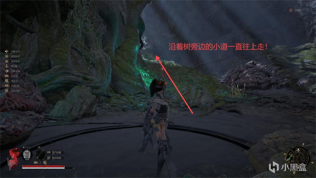 继续朝着大树旁边的小道走!