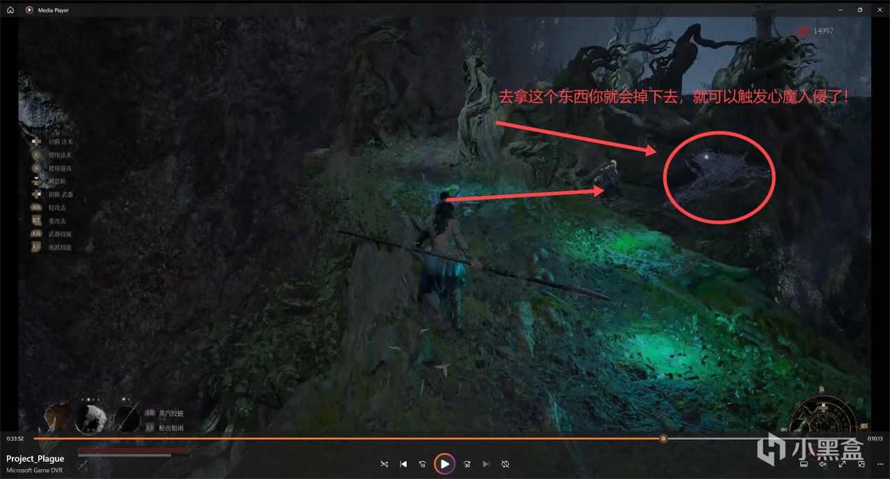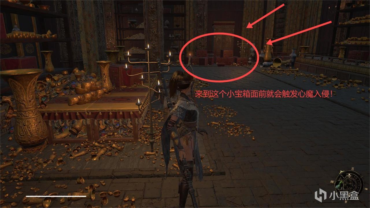 下去以后左侧应该是,小宝箱面前触发心魔入侵!