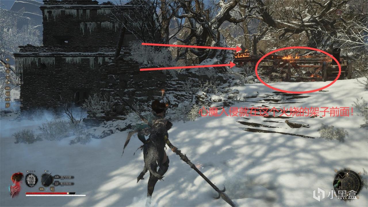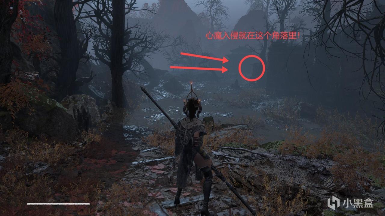 如果你没错过这个心魔的话,这个应该是第一个心魔入侵,打之前记得先淬火,然后打会轻松一点,路线看下面图中注释吧!