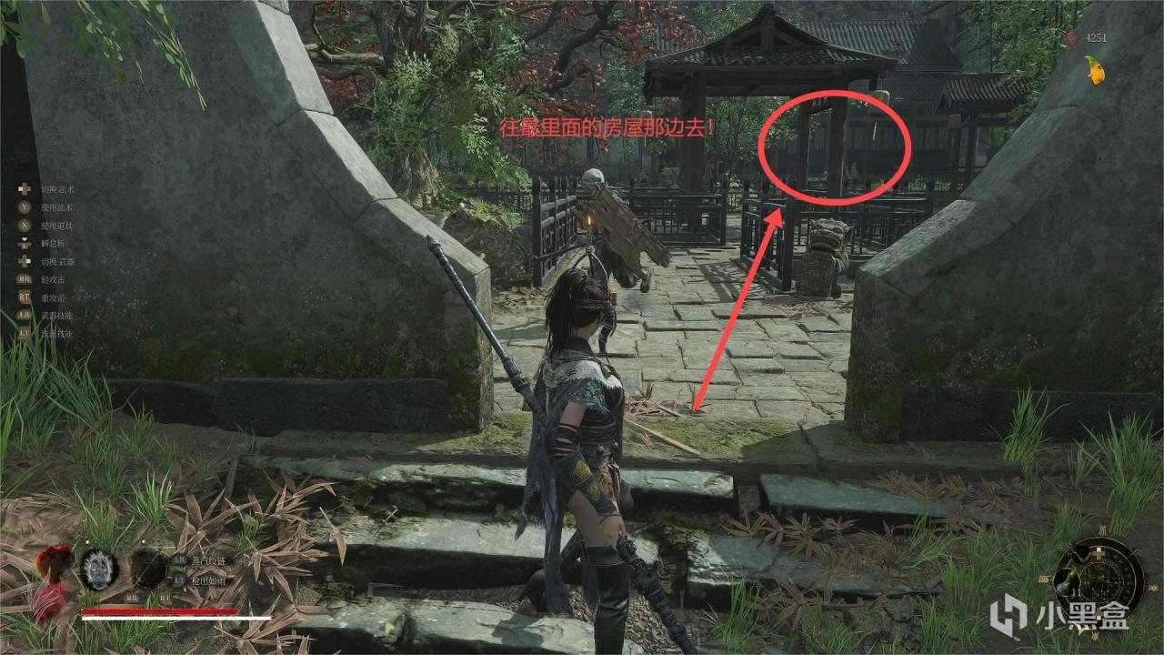 然后往里面走,朝着最里面的大房子方向走!
