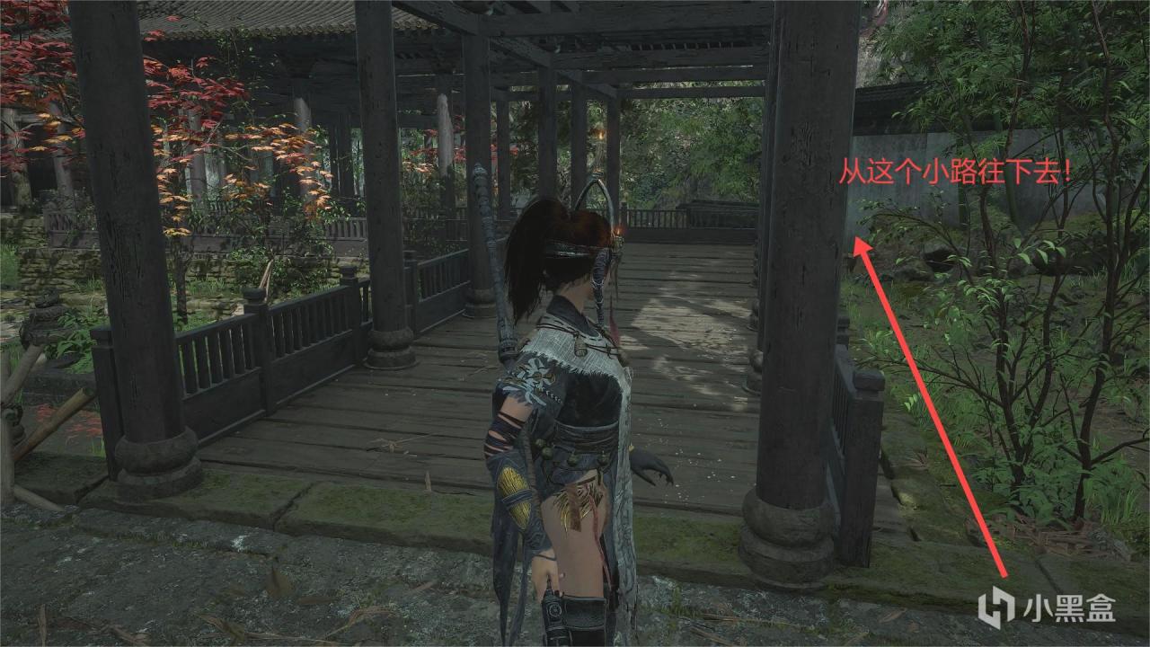 到大房子旁边的走廊后背小道下去!