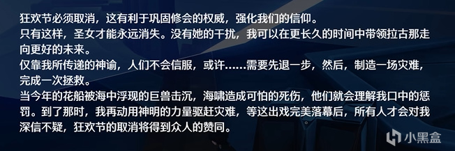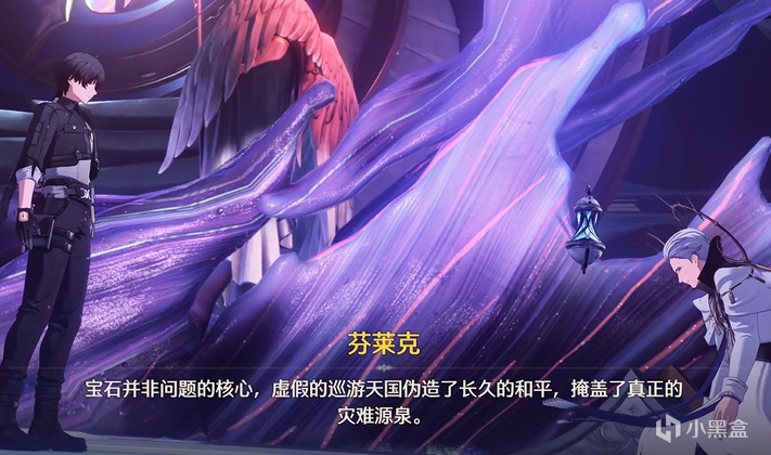 这就要把视线转向残星会和隐海修会,残星会此时也是热锅上的蚂蚁。已知在2.4版本中剧作家研究了数十年蜜芽的身体,并一直在实验鸣式和共鸣者融合的强度与稳定性,最后在残星会会长的旨意下用剧本覆写七丘,欲想让鸣式复苏引发黑潮,也再次表现残星会力量不分对错只要达到目标毁灭什么的都无所谓,但这个计划被卡提一剑劈爆了,鸣式从蜜芽身体中被赶出凝集成宝石,被弗洛洛带走,从弗洛洛的几段过去的回忆中我们可以看到,克里斯托弗打算影响卡提希娅让她堕落为鸣式,再强调了鸣式残存宝石必须在残星会手里,另外还有狂欢会开始前隐海修会就已经开始和残星会合作,建立隐海试验场。
