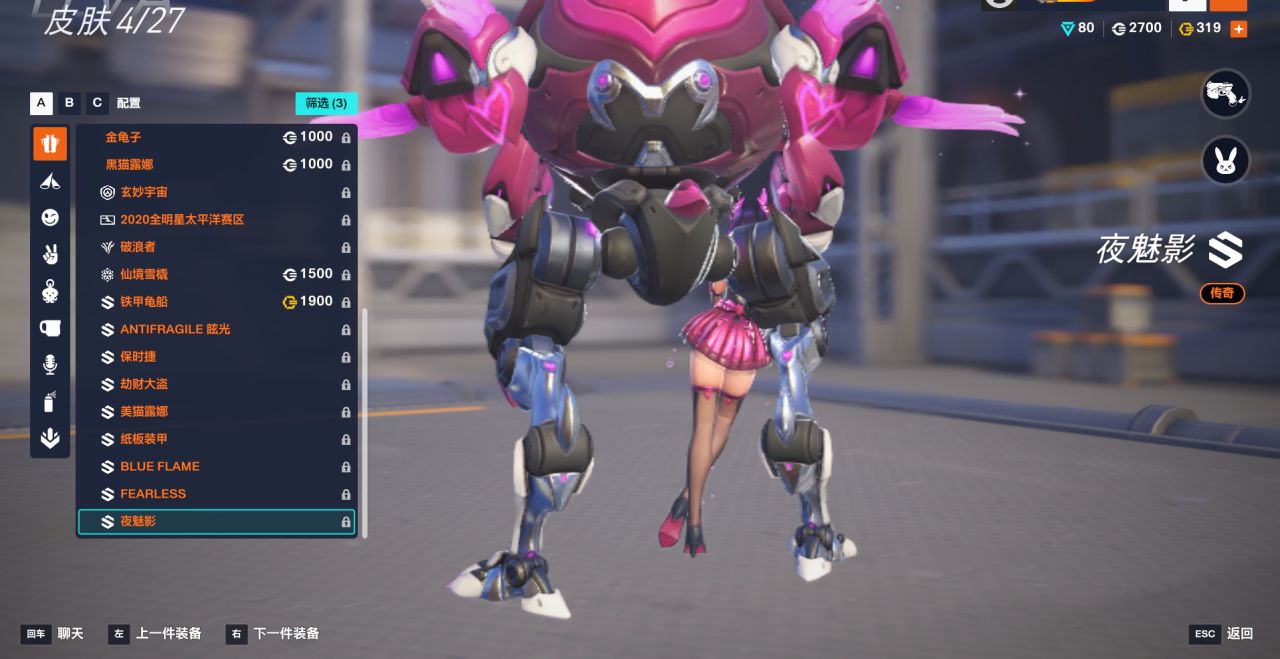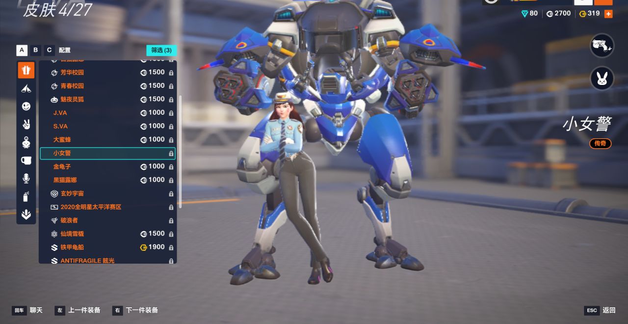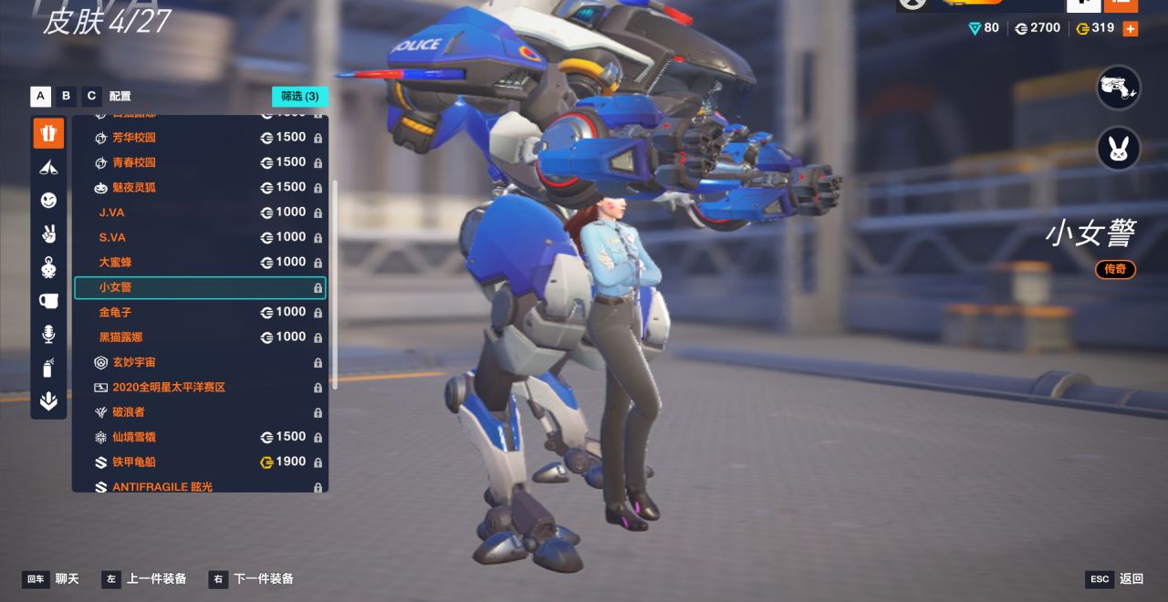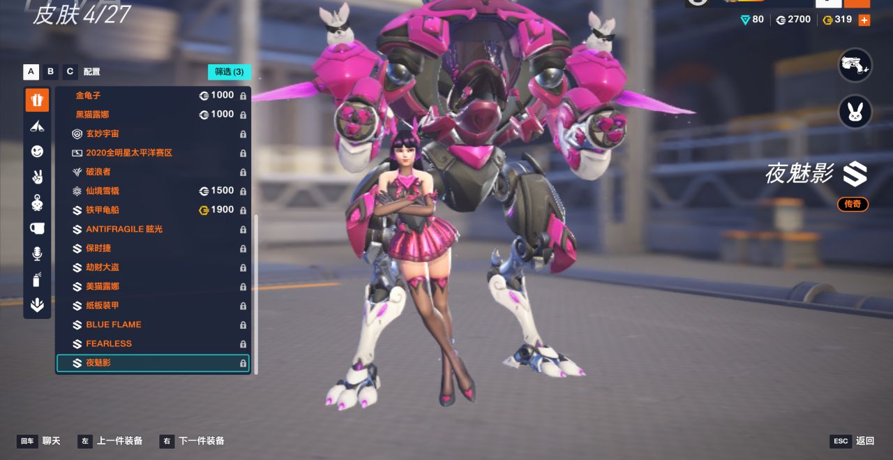 理由嘛,女警皮畢竟是老皮了,特效上差了點。還有就是,機甲上寫了韓國字(bushi)綜合來看,夜魅影比較對胃口,女警皮機甲除了是警車外其實也還好(注堡壘消防車皮最近看守望直播可獲得)