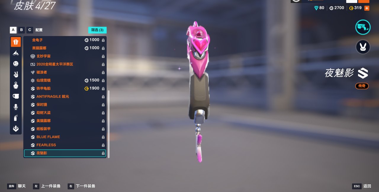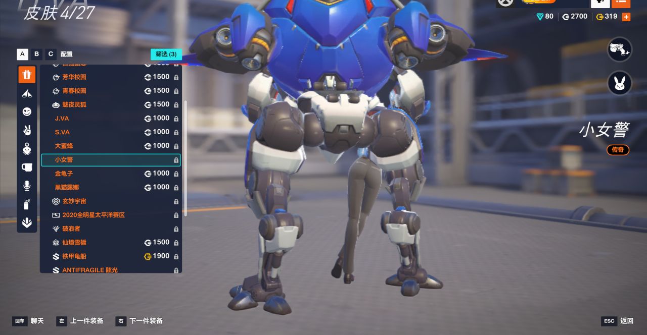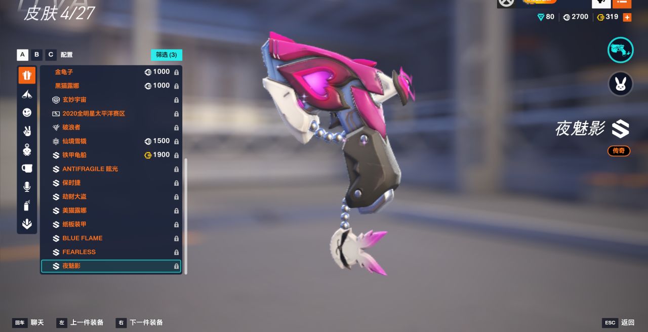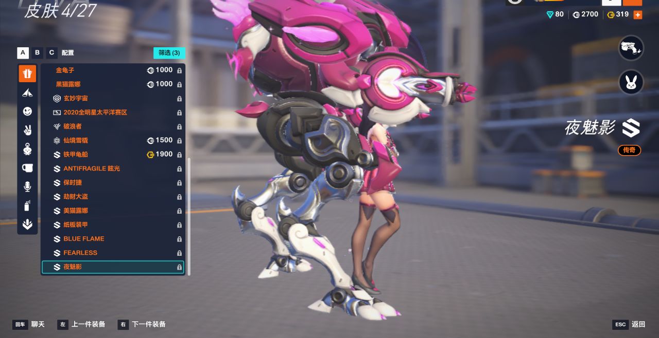 理由嘛,女警皮畢竟是老皮了,特效上差了點。還有就是,機甲上寫了韓國字(bushi)綜合來看,夜魅影比較對胃口,女警皮機甲除了是警車外其實也還好(注堡壘消防車皮最近看守望直播可獲得)