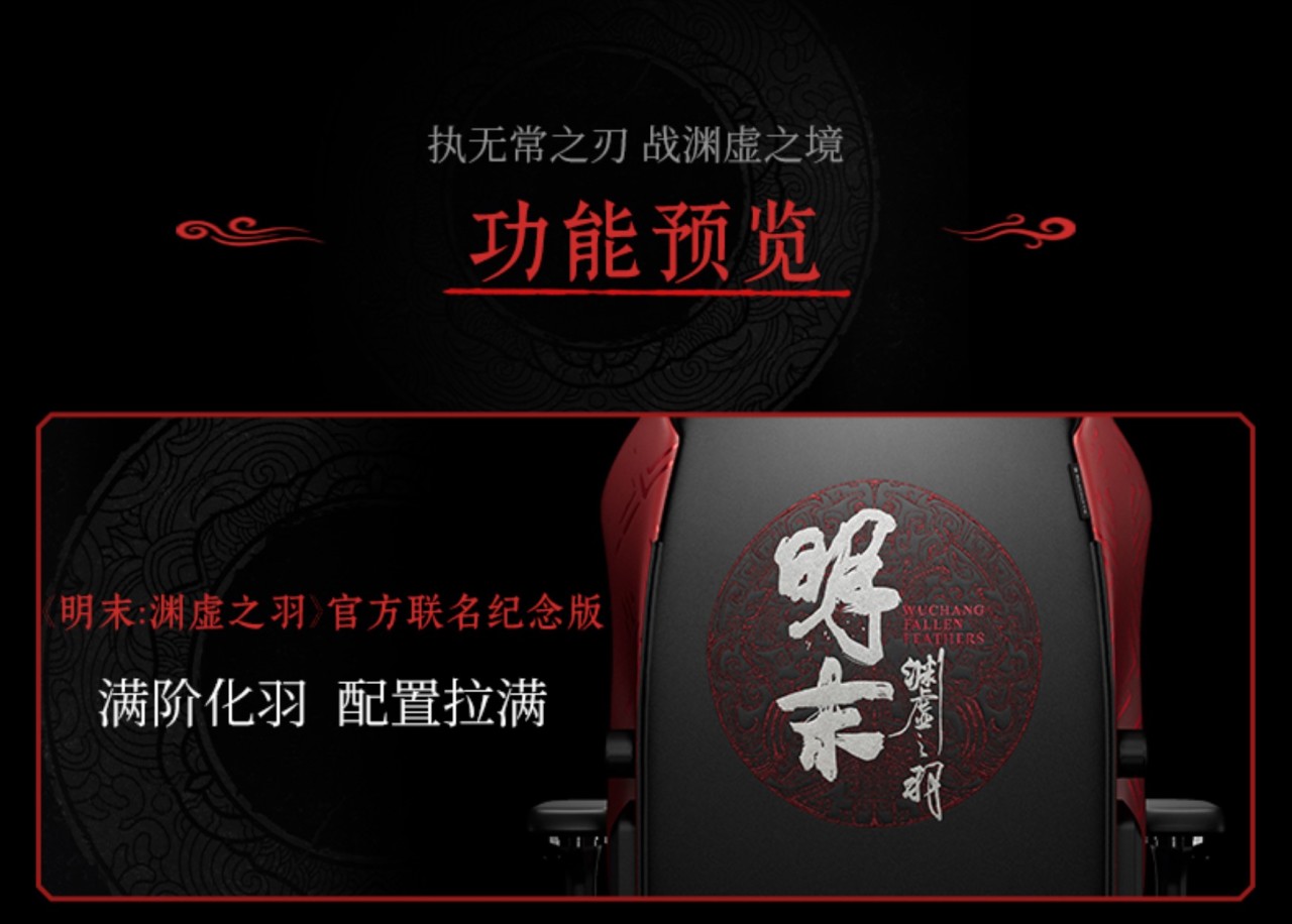 《明末:渊虚之羽》✖ BLACKLYTE逐夜官方联名纪念版电竞椅,目前已全球发售。