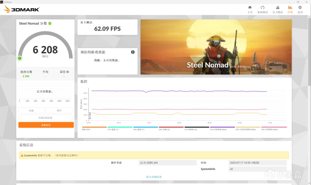 在Steel Nomad測試中,得分6208,接入水冷套件後得分6310。