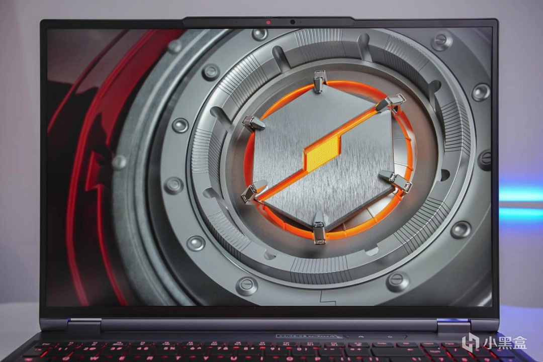 B面是一塊16英寸的MiniLed耀月屏,色彩過渡更加自然細膩。2560×1440的2k超清分辨率,300Hz高刷新率,峯值亮度1200尼特。色彩方面,DCI-P3色域100%,並且通過Pantone調教,保證平均色準ΔE<1。最上方是一顆1080P IR紅外攝像頭,擁有物理防窺開關。