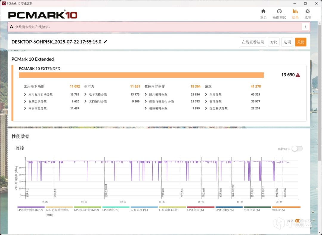 在項目更多更復雜的PCMark 10 Extended測試中得分13690。