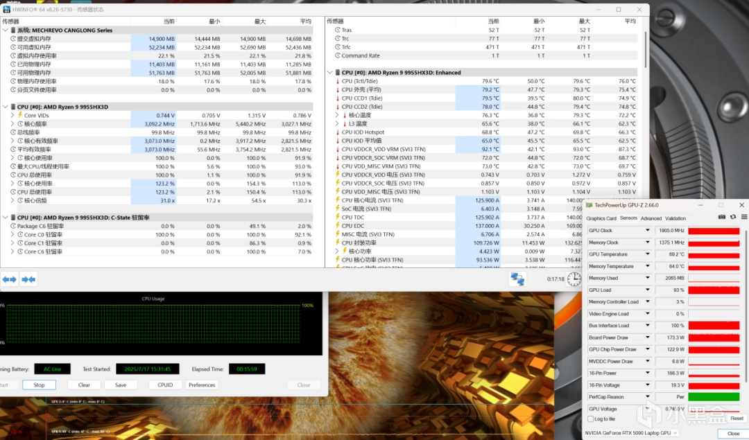 在遊戲環節中,我們將統一接上水冷套件,並且將筆記本調整爲獨顯直連和高能狂暴模式。首先來看幾款競技網遊,衆所周知,AMD的X3D系列處理器在網遊上有着卓越表現。
