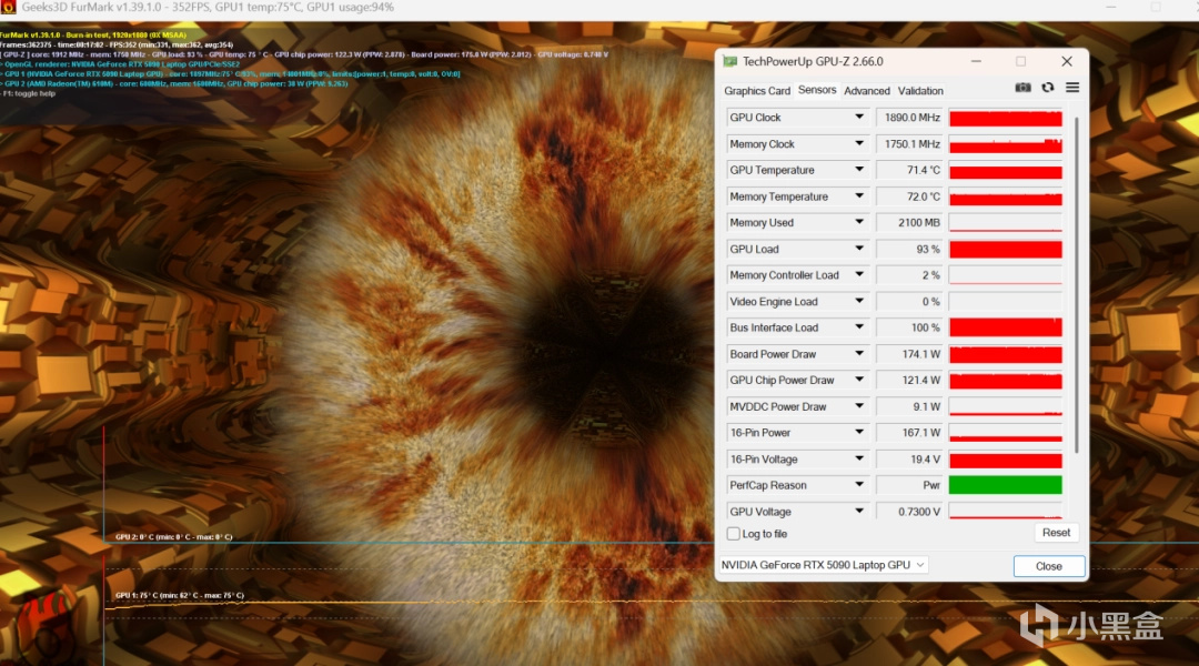 單烤GPU 15分鐘,GPU功耗穩定在175W左右,滿血釋放,此時溫度爲71度。