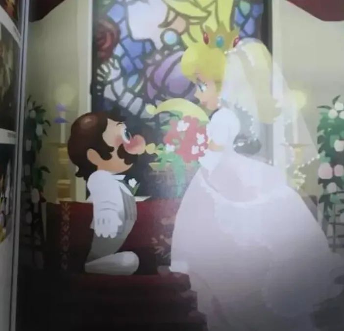 但有时候,碧姬又会热烈感谢马里奥甚至亲吻。比如1993年的《超级马力欧全明星》。2017年的《超级马里奥奥德赛》官方设定集中,还出现了马里奥和公主在教堂举行婚礼的图片。这下更坐实那啥属性了。