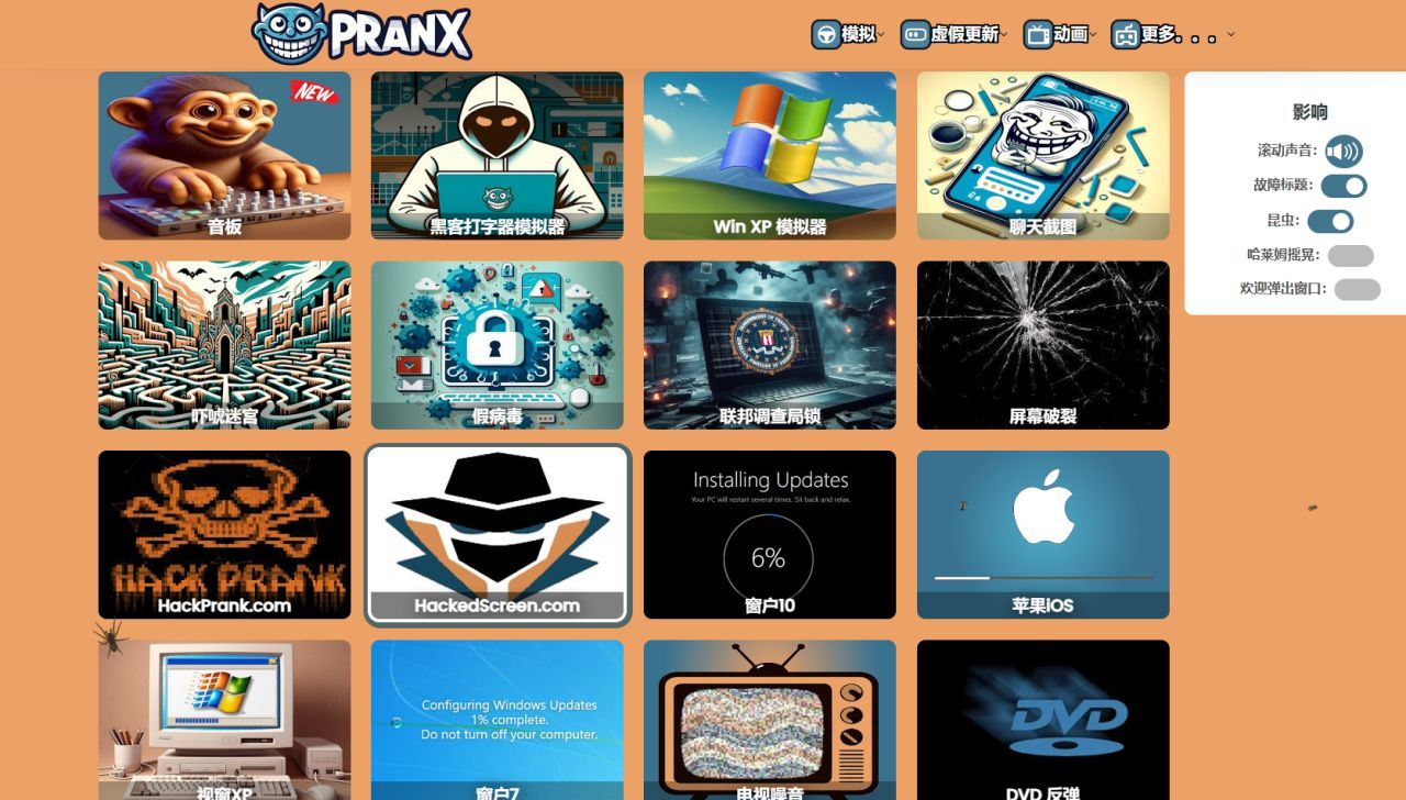 這裏有各式各樣的惡作劇工具,操作簡單,能幫你輕鬆惡搞朋友。比如模擬電腦藍屏、假的病毒警告,還有虛假的系統更新,進度條永遠走不完,讓人乾着急。你還能使用黑客終端打字器,飛速滾動的代碼,瞬間化身神祕黑客。Windows XP模擬器也不容錯過,經典界面與音效,帶你一秒穿越回過去。