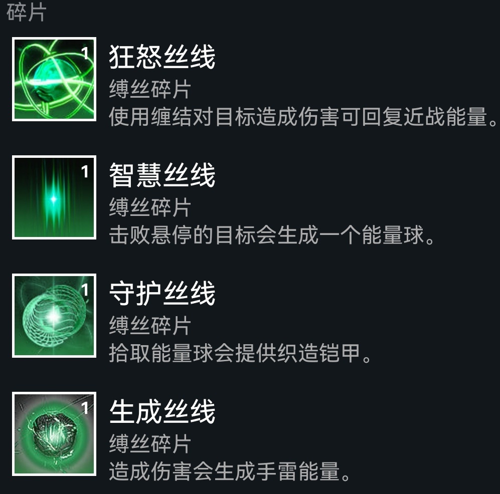 下面是碎片推薦,狂怒守護生成絲線必帶,智慧可換思維絲線或其他: