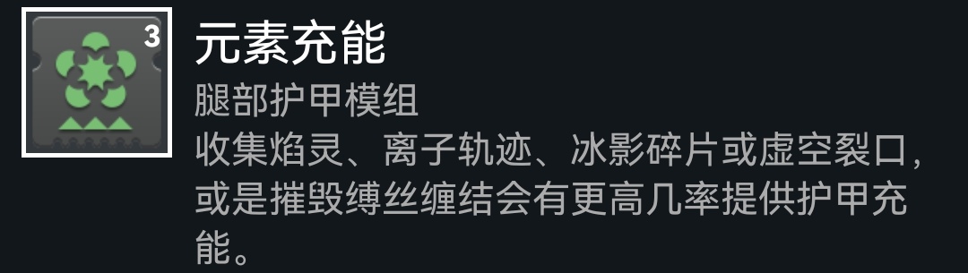 護甲模組建議腿插上元素充能,頻繁摧毀纏結可以提供護甲充能,比產球模組效率更快,因爲我們這一套可以不通過喫球循環技能,不需要復原提供的那十五滴血可以捨棄一部分產球能力,建議插上洗禮模組,可以直接加三十點屬性,有能力的可以把職業堆到一百以上,滾一下直接給盾,可以把復原換藥到病除,在盾期間很快回滿血。