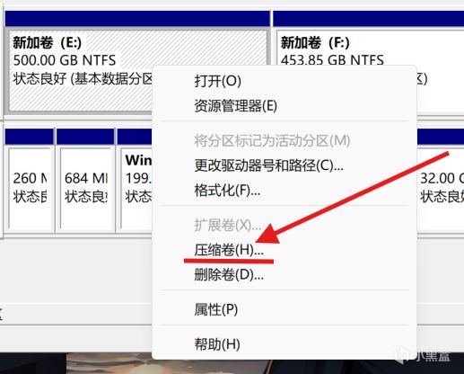 這裏能看到我們磁盤的情況,我們右擊要分盤的區域