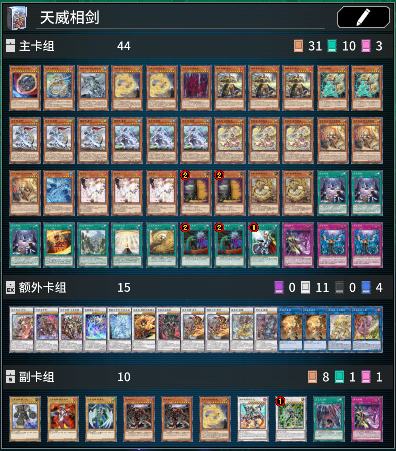 終場:相劍大師-赤霄+天威龍-自覺蟠龍+大星義初始龍+天威無崩之境(場地)+天威龍-真知蟠龍(墓地)+相劍師-泰阿(手卡)+手卡抽2。