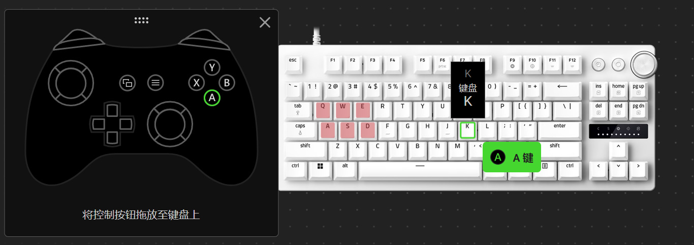 为了让大家更便捷地设置按键,雷云还做了一个手柄示意图,将手柄按键拖到键盘上即可完成映射,更加直观地设置方式,不用点开一个按键翻开菜单去找。